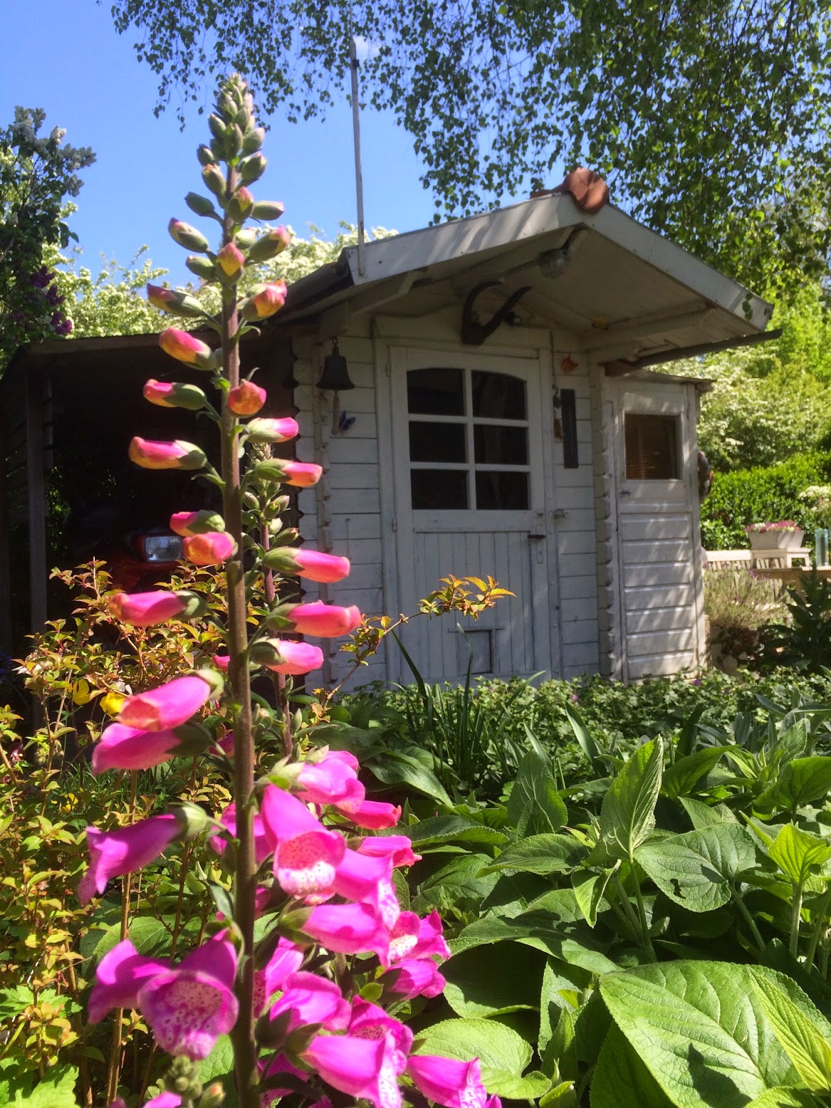 Not that I am complaining, mind! I adore sitting there with a cup of coffee very early in the morning, when my neighbourhood is still asleep, and watch the bees and bumblebees visit my poppies and digitalis. Viggo and Gina by my side; they are wise to this morning ritual.